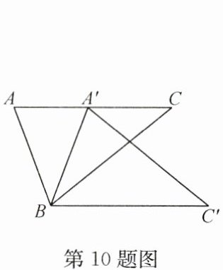 10. 如图,将 $ \triangle ABC $ 绕点 $ B $ 顺时针旋转得到 $ \triangle A'BC' $,点 $ A' $ 恰好落在 $ AC $ 上,已知 $ \angle C = 40^{\circ} $,$ AC // BC' $,则 $ \angle A'BC = $