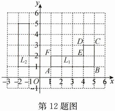 12. 如图,在平面直角坐标系 $ xOy $ 中,图形 $ L_2 $ 可以看作是由图形 $ L_1 $ 经过若干次图形变换(平移、旋转、轴对称)得到的,写出一种由图形 $ L_1 $ 得到图形 $ L_2 $ 的变换过程: