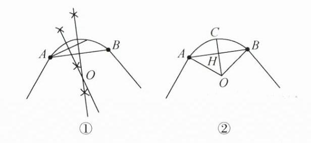 (1)作出$\overset{\frown}{AB}$所在圆的圆心 O;(用直尺和圆规作图,保留作图痕迹,不写作法)