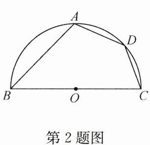 2. 如图,$BC$ 为半圆 $O$ 的直径,$A$、$D$ 为半圆上的两点,若 $A$ 为半圆弧($\overset{\frown}{BAC}$)的中点,则$\angle ADC$ = (