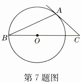 7. 如图,$AB是\odot O$的弦,$AC是\odot O$的切线,$A$为切点,$BC$经过圆心,若$\angle OBA = 25^{\circ}$,则$\angle BCA$的度数为(