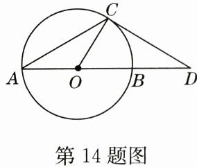 14. (9 分)如图,已知$\odot O的直径AB与弦AC的夹角为30^{\circ}$,过点$C作\odot O的切线交AB的延长线于点D$,$OD = 30$ cm,求直径$AB$的长.