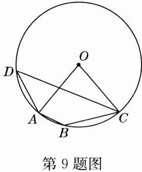9. 如图,已知四边形$ABCD是\odot O$的内接四边形,$\angle B = 140^{\circ}$,则$\angle AOC = $