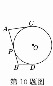 10. 如图,$AB$、$AC$、$BD都是\odot O$的切线,$P$、$C$、$D$为切点,如果$AB = 5$,$AC = 3$,那么$BD$的长为______.