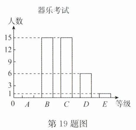 19. (17 分)某艺校音乐专业自主招生考试中,所有考生均参加了“声乐”和“器乐”两个科目的考试,成绩都分为五个等级. 对某考场考生两科考试成绩进行了统计分析,绘制了如下统计表和统计图(不完整).