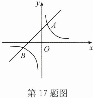 17. (10 分)如图,已知一次函数 $ y_1 = kx + b $ 与反比例函数 $ y_2 = \frac{m}{x} $ 的图象交于 $ A(2,4) $,$ B(-4,n) $ 两点。