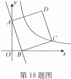 18. (10 分)已知直线 $ y = -3x + 3 $ 与 x 轴,y 轴分别交于点 B,A,以线段 AB 为边在第一象限内作正方形 ABCD,点 C 正好落在曲线 $ y = \frac{k}{x}(k > 0,x > 0) $ 上。