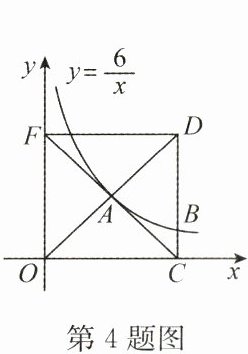 4. 如图,双曲线$y = \frac{6}{x}(x \gt 0)的图象经过正方形OCDF对角线的交点A$,则这条双曲线与正方形$CD边交点B$的坐标为(