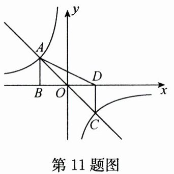 11. 如图,正比例函数 $ y = -x $ 与反比例函数 $ y = -\frac{6}{x} $ 的图象交于 $ A $,$ C $ 两点,过点 $ A $ 作 $ AB \perp x $ 轴于点 $ B $,过点 $ C $ 作 $ CD \perp x $ 轴于点 $ D $,则 $ \triangle ABD $ 的面积为