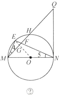 (2)解:如图②,连接OE交MQ于点G,设⊙O的半径是r。由