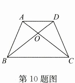 10. 如图,在四边形$ABCD$中,对角线相交于点$O$,若$\frac{OA}{OC} = \frac{OD}{OB}$,则图中有