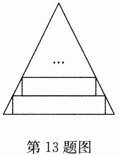 13. 如图,一等腰三角形的底边长是 18 厘米,底边上的高是 18 厘米,现在沿底边依次从下往上画宽度均为 3 厘米的矩形,画出的矩形是正方形时停止,则这个矩形是第