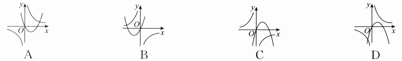 7. 在同一平面直角坐标系中,反比例函数 $ y = \frac{b}{x}(b \neq 0) $ 与二次函数 $ y = ax^2 + bx(a \neq 0) $ 的图象大致是(