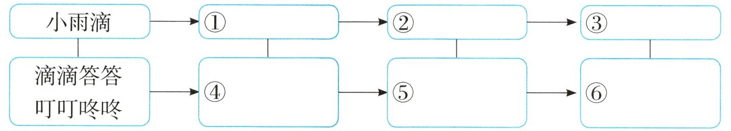 3. 小雨滴是怎样“从一首轻快的山中小曲,唱到波澜壮阔的海洋大合唱”的?想一想,填一填。