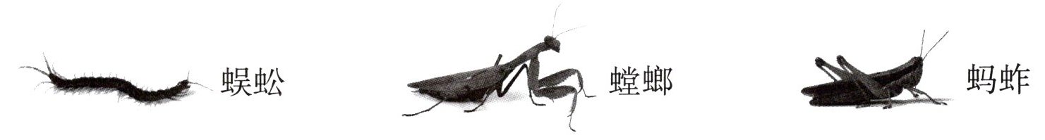 1. 上面的字都带有偏旁“____”,表示这些字的意思通常与____有关。我猜“螳螂”可能读作__________。