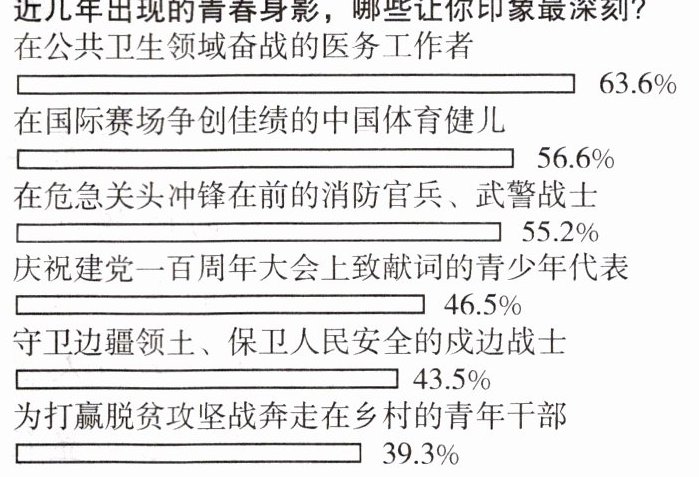 (1)同学们在网络上搜集了一些数据,发现“青春模样”具有很多特质。请阅读下图,归纳出两点。
