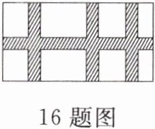 16. 在长为 $ 32 \, m $、宽为 $ 20 \, m $ 的长方形耕地上,修同样宽的四条道路(如图所示),把耕地分为大小不等的长方形试验地,耕地总面积为 $ 551 \, m^2 $,道路应修多宽?(只列方程)