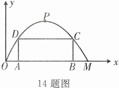 14. 如图,某公路隧道横断面为抛物线,其最大高度为 $ 6m $,底部宽度为 $ 12m $,现以 $ O $ 为原点,$ OM $ 所在的直线为 $ x $ 轴建立平面直角坐标系。