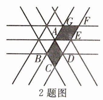2. 万花筒是由三块等宽等长的玻璃片围成的,一个万花筒图案如图所示,图中所有小三角形均是全等的等边三角形,其中的菱形 $ AEFG $ 可以看作是把菱形 $ ABCD $ 以点 $ A $ 为中心(