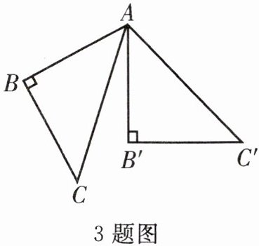 3. 如图,在等腰直角三角形 $ ABC $ 中,$ \angle B = 90° $,将 $ \triangle ABC $ 绕顶点 $ A $ 逆时针旋转 $ 60° $ 后得到 $ \triangle AB'C' $,$ \angle BAC' $ 等于(