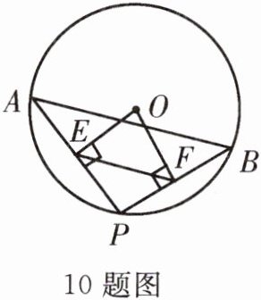 10. 如图,A,B 是⊙O 上两点,AB = 10,P 是⊙O 上一动点(点 P 与点 A,B 不重合),连接 AP,PB,过点 O 分别作 OE⊥AP 于点 E,OF⊥PB 于点 F,连接 EF,求 EF 的长。