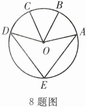 8. 如图,$E是\odot O$上的点,$B$,$C分别是\overset{\frown}{AD}$的三等分点,若$\angle BOC = 50^{\circ}$,则$\angle AED$的度数为