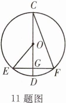11. 如图,$\odot O的直径CD经过弦EF的中点G$,$\angle EOD = 40^{\circ}$,求$\angle DCF$的度数.