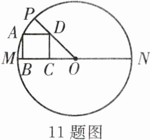 11. 如图,在$\odot O$中,直径$MN= 10$,正方形$ABCD的四个顶点分别在半径OM$,$OP以及\odot O$上,若$\angle POM= 45^{\circ}$,则$AB$的长为
