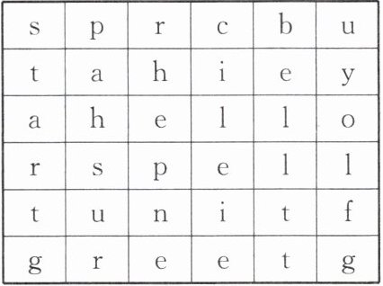 1. start 2. bell/be 3. hi 4. hello/he 5. spell 6. unit/it 7. greet