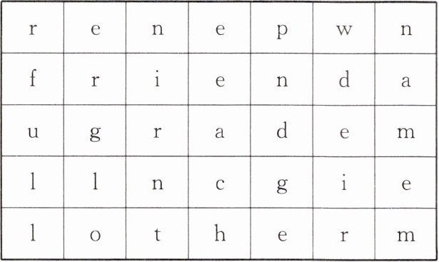 1. full 2. friend 3. grade 4. lot/other/the/he/her 5. name/me 6. each