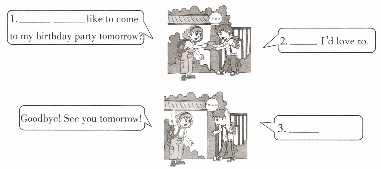 1. Would you 2. Sure. /Yes. 3. Goodbye!/Bye-bye!/Bye!