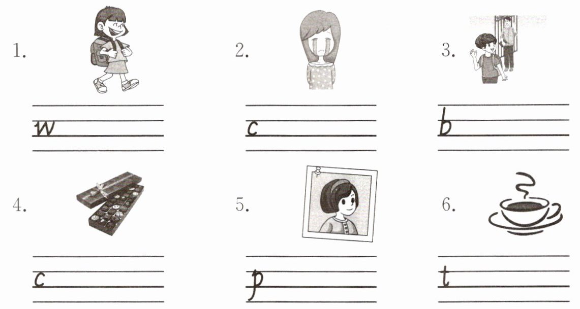 1. walk 2. cry 3. bye 4. chocolate(s) 5. photo/picture 6. tea