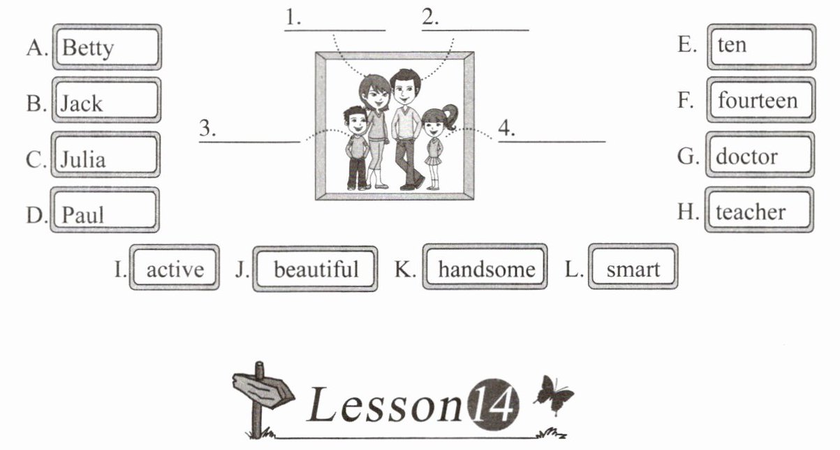 Hello! My name is Paul. I am ten. I am very active. I come from America. I have a happy family. My father is a doctor. His name is Jack. He is handsome. My mother is a teacher. Her name is Julia. She is beautiful. My sister is a middle school student (中学生). Her name is Betty. She is fourteen. She is smart.
