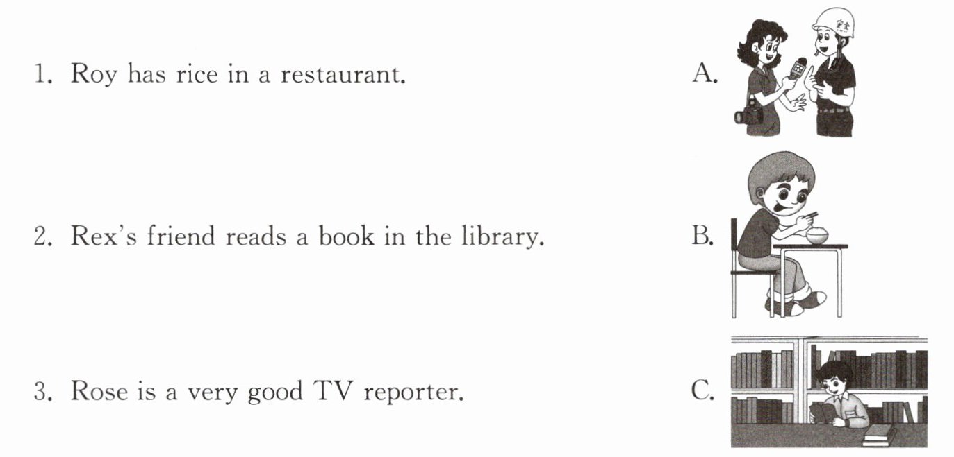 四、读一读下面的句子,并将其与相应的图片连线。