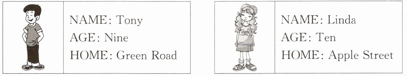 Tony;Linda;ten;nine;Apple Street;Green Road
