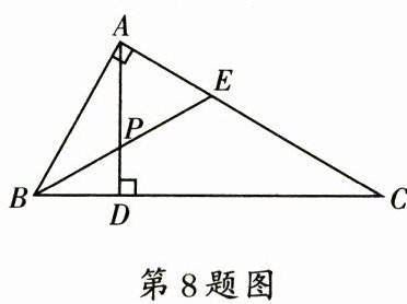 8. 如图,在△ABC中,∠BAC=90°,∠C=30°,AD⊥BC于点D,BE是∠ABC的平分线,且交AD于点P,如果AP=1,则AC的长为