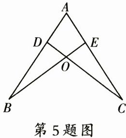 5. 如图,点D,E分别在线段AB,AC上,CD与BE相交于点O.已知AB=AC,现添加以下条件后仍不能判定△ABE≌△ACD的是