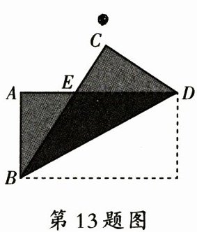 13. 如图所示,把长方形纸片ABCD沿对角线折叠,重叠部分为△EBD,那么有下列说法: