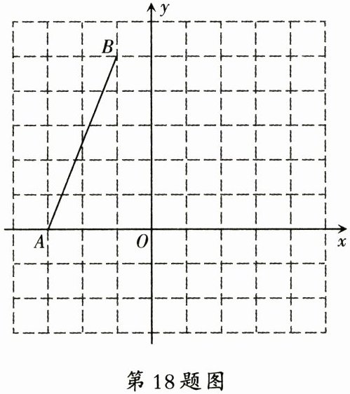 18. (6分)如图,在$9×9$的网格中建立如图的平面直角坐标系,点$A(-3,0)$,点$B(-1,5)$.仅用无刻度的直尺在给定网格中按下列步骤完成作图.(保留作图过程的痕迹)