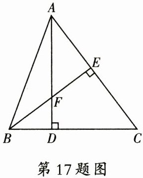 17. (6分)如图,在$△ABC$中,$∠CAB=52^{\circ },∠ABC=74^{\circ },AD⊥BC$于点$D,BE⊥AC$于点$E,AD$与$BE$交于点$F$.求$∠AFB$的度数.