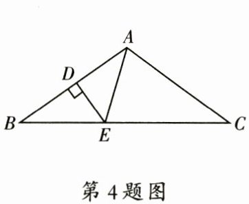 4. 如图,在$ \triangle ABC $中,$ AB = AC $,$ \angle BAC = 100^{\circ} $,$ AB $的垂直平分线$ DE $分别交$ AB $,$ BC $于点$ D $,$ E $,则$ \angle BAE $的大小为