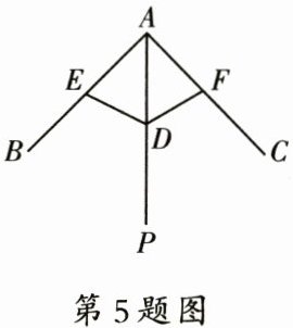 5. 我国的油纸伞历史悠久,工艺独特.如图,伞不论张开还是缩拢,伞柄$ AP $始终平分同一平面内两条伞骨所成的角$ \angle BAC $,从而保证伞圈$ D $能沿着伞柄滑动.为了证明这个结论,我们的依据是