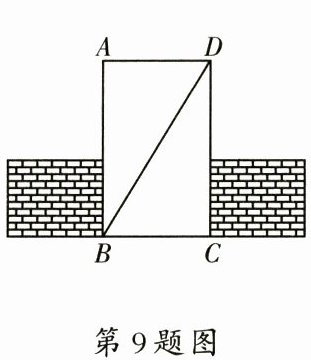 9. 如图所示,工人师傅在砌门时,通常用木条$BD$固定长方形门框$ABCD$,使其不变形,这样做的数学依据是.