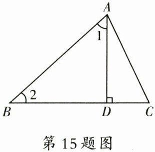 15. (6分)如图,在$\triangle ABC$中,$AD \perp BC$,$\angle 1 = \angle 2$,$\angle C = 65^{\circ}$.求$\angle BAC$的度数.