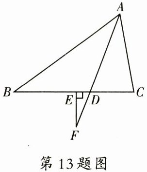 13. 如图,在$\triangle ABC$中,$AD$是$\triangle ABC$的角平分线,$F$在射线$AD$上,$FE \perp BC$于点$E$,$\angle C = 80^{\circ}$,$\angle B = 36^{\circ}$,则$\angle F =$$^{\circ}$.