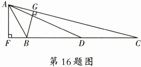 16. (6分)如图,$\triangle ABC$的边$BC$上的高为$AF$,中线为$AD$,$AC$边上的高为$BG$,已知$AF = 6$,$BD = 10$,$BG = 5$.