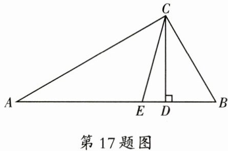 17. (6分)如图,在$\triangle ABC$中,$\angle A = \frac{1}{2}\angle B = \frac{1}{3}\angle ACB$,$CD$是$\triangle ABC$的高,$CE$是$\angle ACB$的角平分线,求$\angle DCE$的度数.