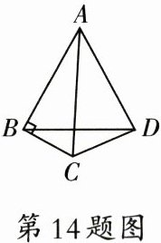 14. (12分)如图,在△ABC中,以AB为边作等边三角形ABD(点C,D在边AB的同侧),连接CD。若∠ABC=90°,∠BAC=30°,求∠BDC的度数。
