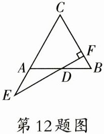 12. (8分)如图,在△ABC中,D为AB边上一点,DF⊥BC于点F,延长FD,CA交于点E。若∠E=30°,AD=AE。求证:△ABC为等边三角形。