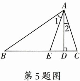 5. 如图,在$\triangle ABC$中,$AD⊥BC$,$AE$平分$∠BAC$,若$∠1 = 40^{\circ}$,$∠2 = 25^{\circ}$,则$∠B$的度数为(